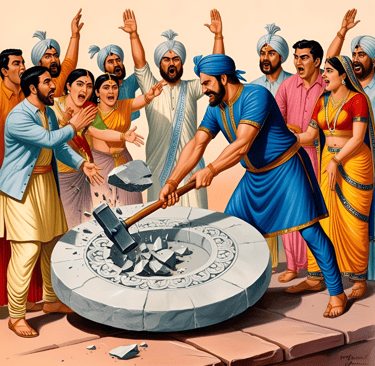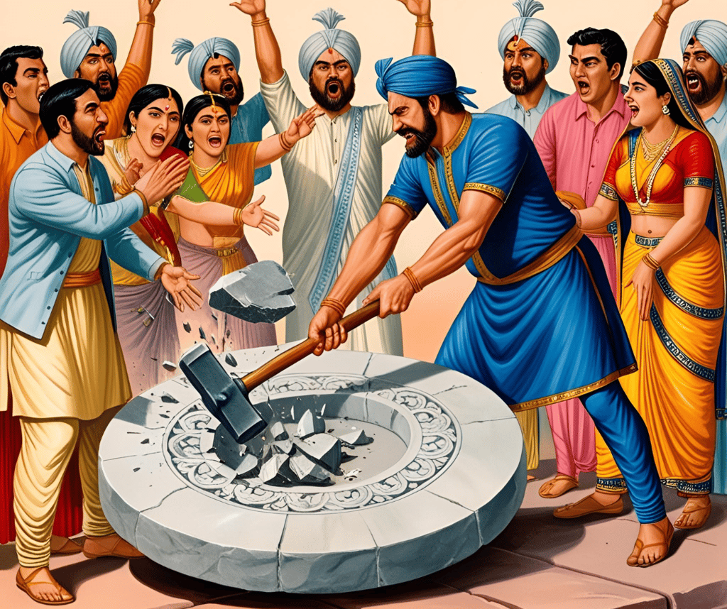 இப்படி சிறிது காலம் கடந்த பிறகு, இது ஒரு இயந்திர வழக்கமாக மாறி விட்டது. கூட்டம் அதிகரித்ததால் எல்லோருக்கும் போதுமான நேரம் கிடைக்காததால் முதலில் நிச்சயித்த முறைகளில் மாற்றம் ஏற்படத் தொடங்கியது. தங்கள் பிரச்சினைகளை சீக்கிரமாக சொல்லிவிட்டு, எடுக்க வேண்டிய நடவடிக்கைகளை பற்றி சொல்ல வேண்டியது தவறியது. கூட்டத்தை வைத்து காசு சேர்க்கும் எண்ணம் உள்ளவர்கள் ஊடுருவி பலரையும் ஏமாற்றி பணம் பறிக்க ஆரம்பித்தனர். எல்லோருக்கும் உதவியாக இருக்க வேண்டும் என்று நினைத்த அண்ணாமலை தான் ஆரம்பித்த வழி தவறான பாதையில் போவதை கண்டு வருந்தினார். ஒரு நாள் காலை எல்லோரும் கூடி இருக்கும் போது, ஒரு பெரிய சுத்தி எடுத்து வந்து அந்தக் கல்லை பொடிப் பொடியாக உடைக்க ஆரம்பித்தார். எல்லோரும் அலற ஆரம்பித்தனர். அவரை யாராலும் தடுக்க முடியவில்லை. கல் முழுவதுமாக உடைந்து முடியும்வரை அவர் வேக வேகமாக தன் சுத்தியால் அதை அடித்துக்கொண்டே இருந்தார்.